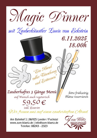 Donnerstag, 06.11.2025 - Zaubermenü mit Louis von Eckstein
